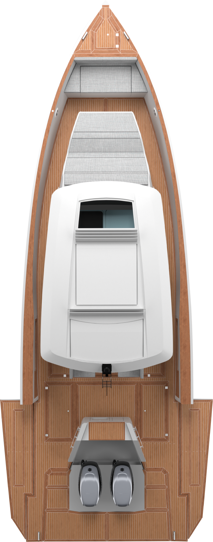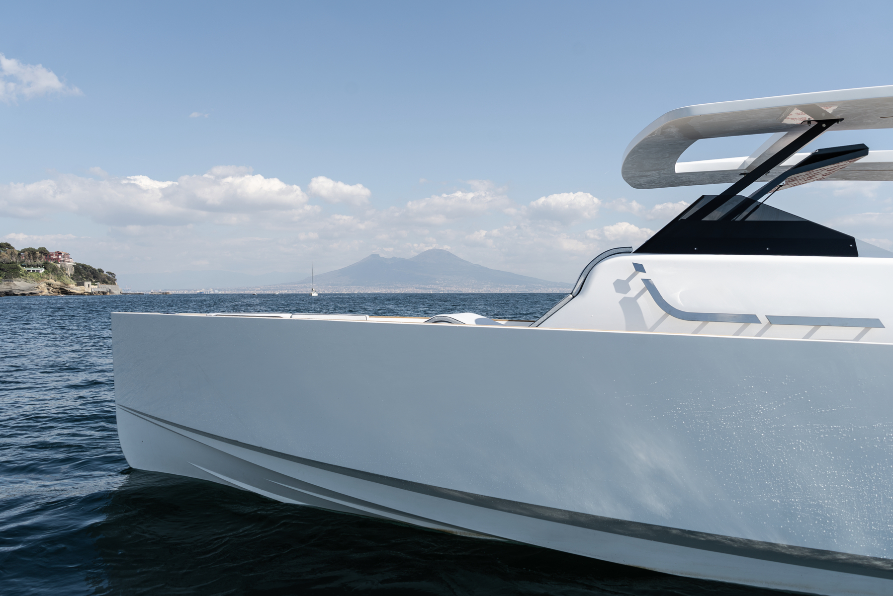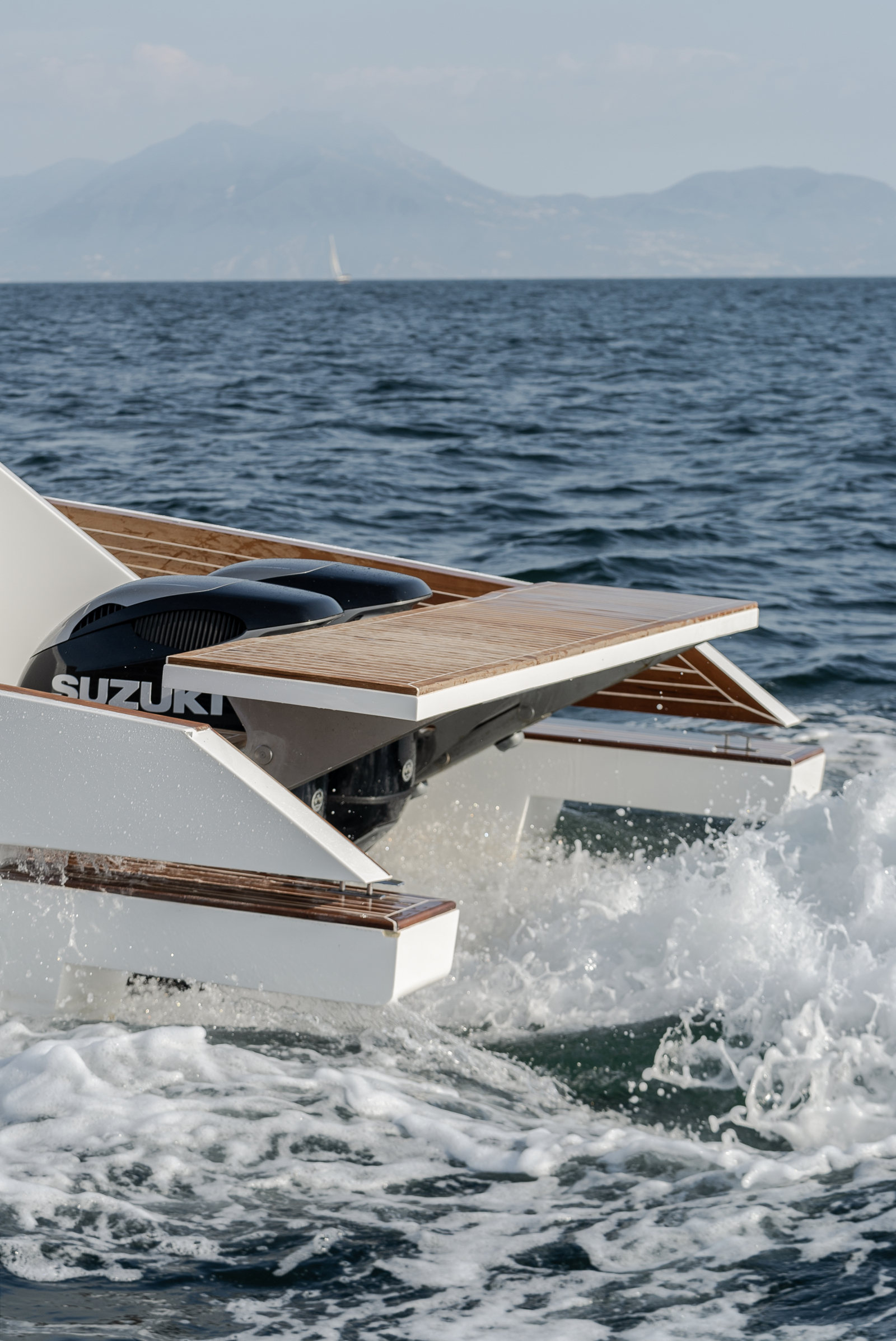 La linea esterna dell’imbarcazione ricorda quella delle barche a vela più moderne, con delle murate molto basse e una sinuosità tipica dei modelli più sportivi. L’eleganza di queste linee minimali traspare dalla capacità della barca di farsi notare sull’acqua senza essere disturbare la vista del mare di cui vuole essere elemento integrato e rispettoso.