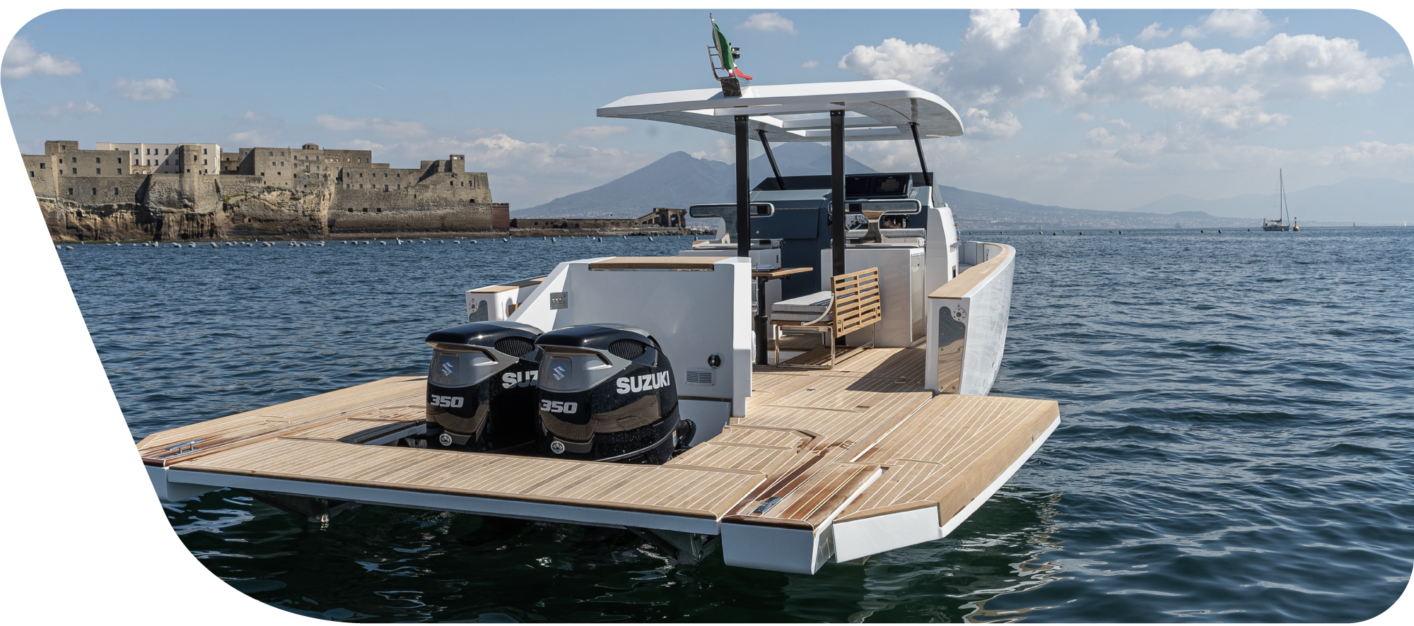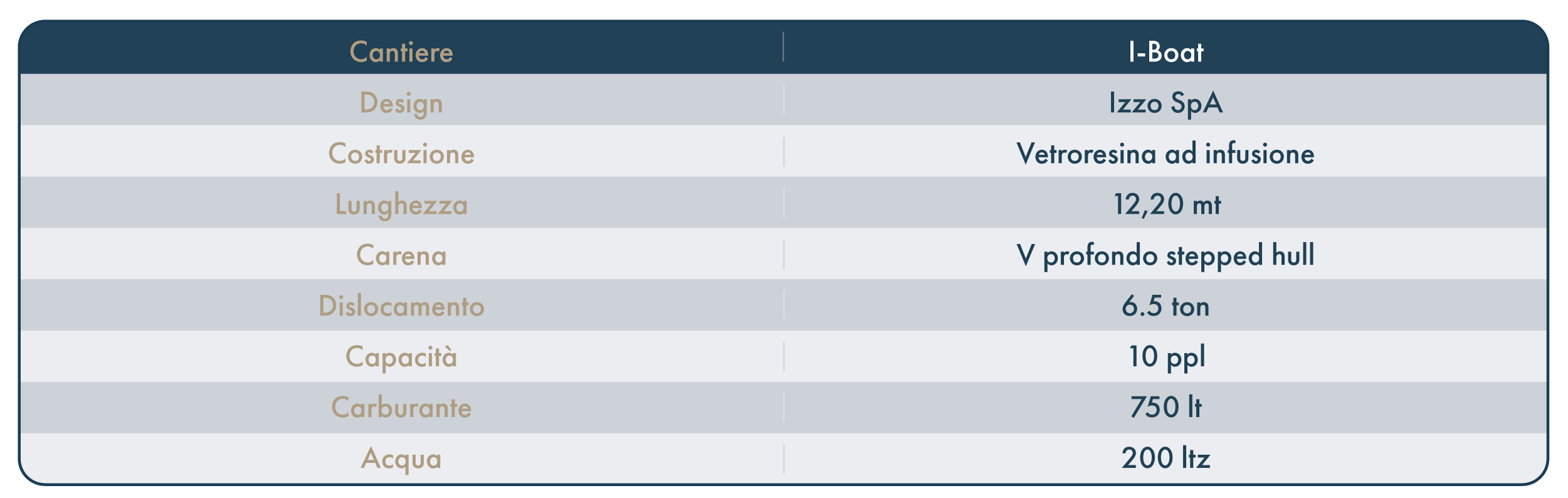 I-Boat #404 è un walkaround a motore di 12,20 mt di lunghezza e 3,9 mt di larghezza con un design estremamente innovativo. Costruita con ampi spazi in coperta e minimi ingombri per permettere di vivere appieno il mare.